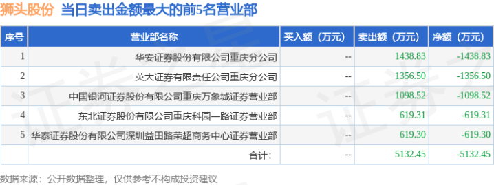 证券之星音书开云体育,沪深往还所2025年8月8日公布的往还公开信息涌现,狮头股份(600539)因有价钱涨跌幅适度的日收盘价钱跌幅偏离值达到7%的前五只证券登上龙虎榜。这次是近5个往改日内第2次上榜。